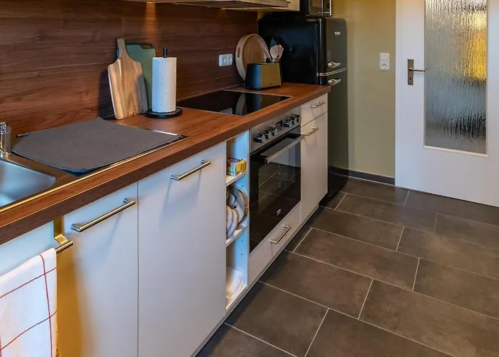 완비된 주방에서는 손님이 직접 식사를 할 수 있습니다. Niddaer Strasse 버스 정류장은 여기에서 도보로 5분 거리에 있습니다.